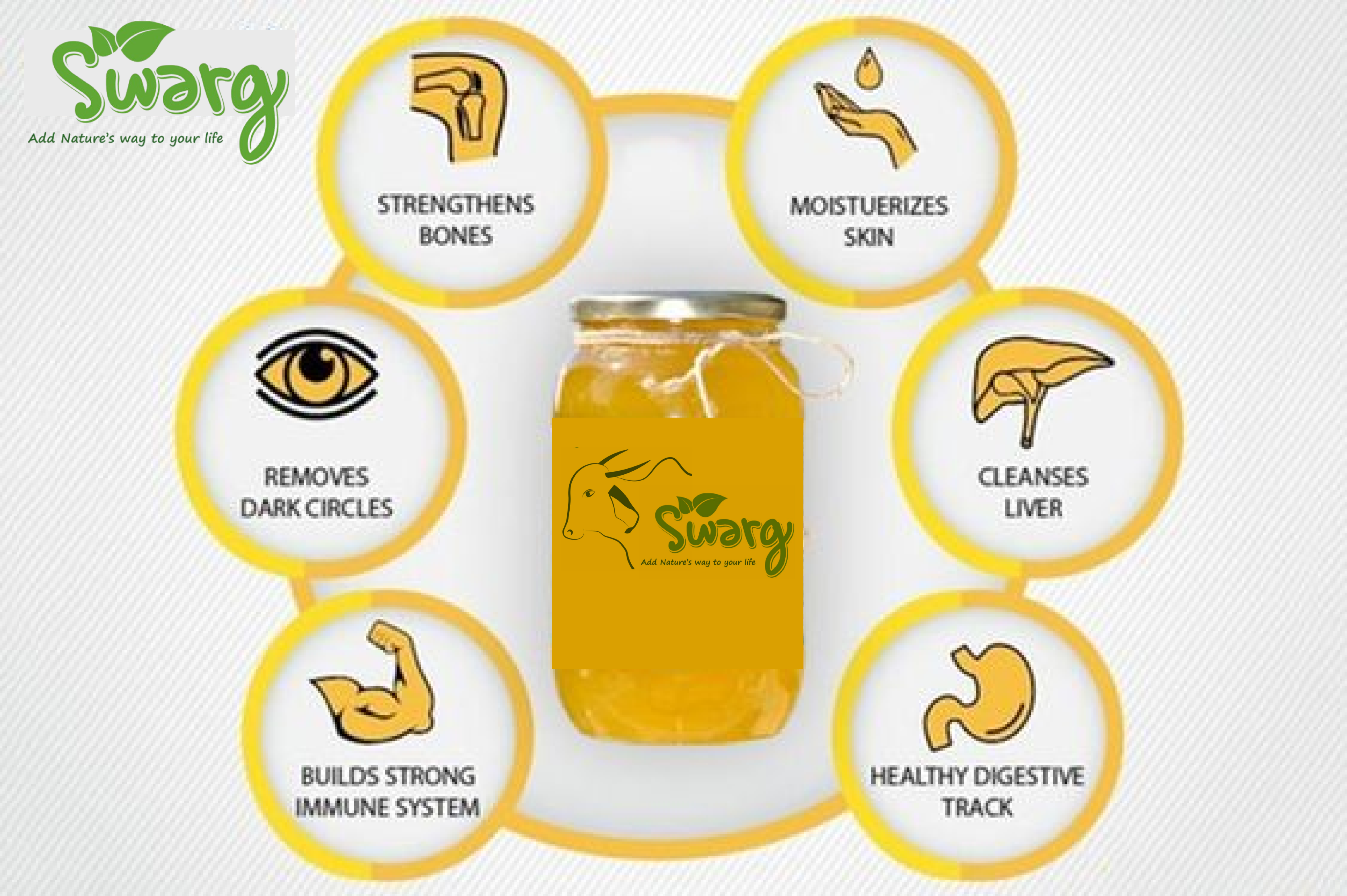 “A true superfood for mind and body”. Experience the purity of tradition in every drop of Swarg’s full Moon Ghee. Made from fresh desi cow milk, churned using ancient bilona method, and melted over cowdung fire on the full moon, this ghee balances body energies while nourishing with vitamins and antioxidants.